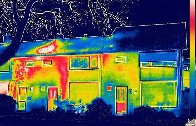 Hieronder ziet u enkele voorbeelden van thermografische opnames waarbij warmteverlies zichtbaar is.